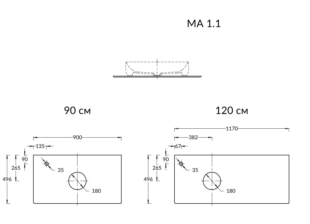 Столешница из керамического гранита «Риккарди» предназначена для использования с тумбами MAGICA шириной 120 см и раковинами, встраиваемыми сверху. Смеситель устанавливается на столешницу (используйте смесители с подходящим типом установки).